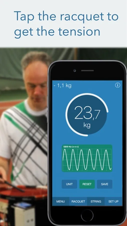 RacquetTune ensures that your racquet is ideally suited to your style of play. Simple and straightforward to use, the app uses the sound generated by tapping the strings to calculate the tension with high accuracy. In addition, the interactive swingweight calculator aids in customizing your racquet to fit your own stroke pattern, while the stiffness calculator allows you to simulate different racquet configurations.