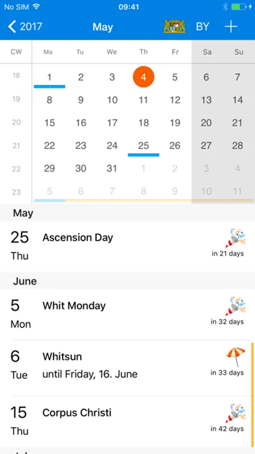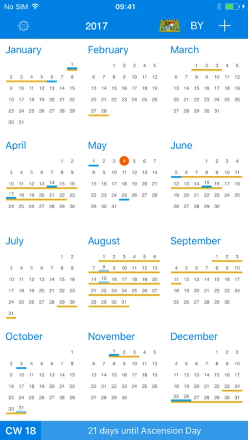 Don't miss the app badge. Get the day of the year, day of the month, the current calendar week or the time until the next holiday directly on the home screen!