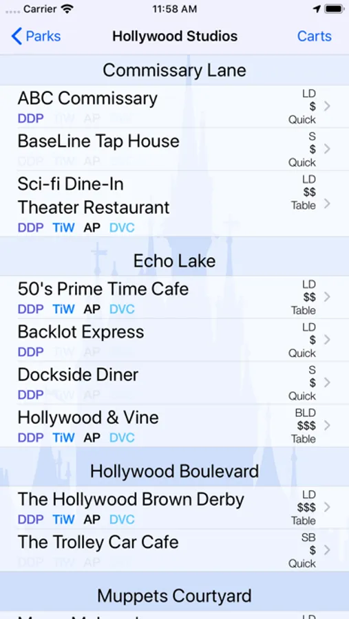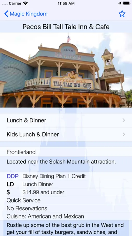 • Menus and info for over 300 Disney World restaurants, carts and stands