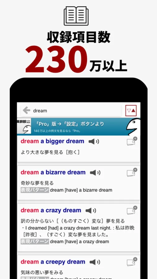 "英和見出し項目230万以上、和英見出し項目260万以上を収録する無料の英語辞書(英和/和英辞典)アプリです。