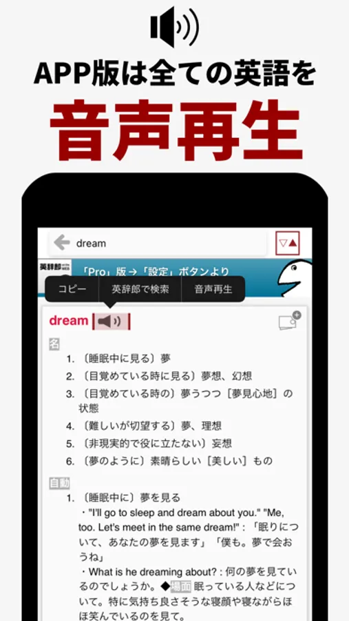 ※アプリ内の音声再生は、OSの機能による合成音を使用しているため、正しい発音とは異なる場合があります。