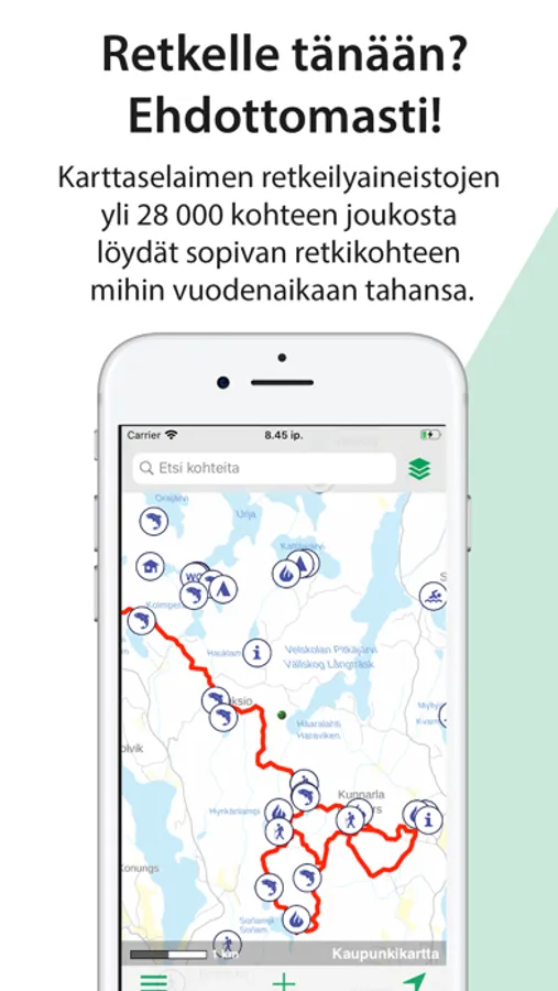 - Retkeilyaineistot, kuten laavut, hiihtoladut ja moottorikelkkareitit, yli 28 000 kohdetta!