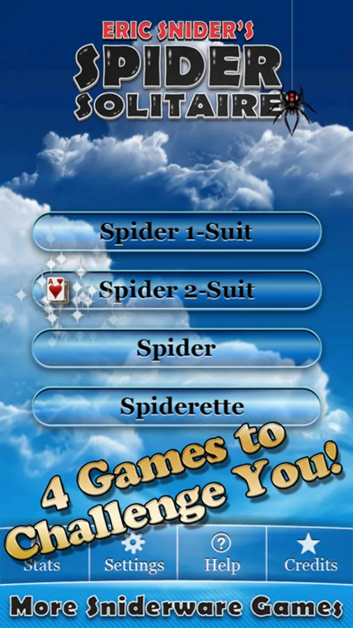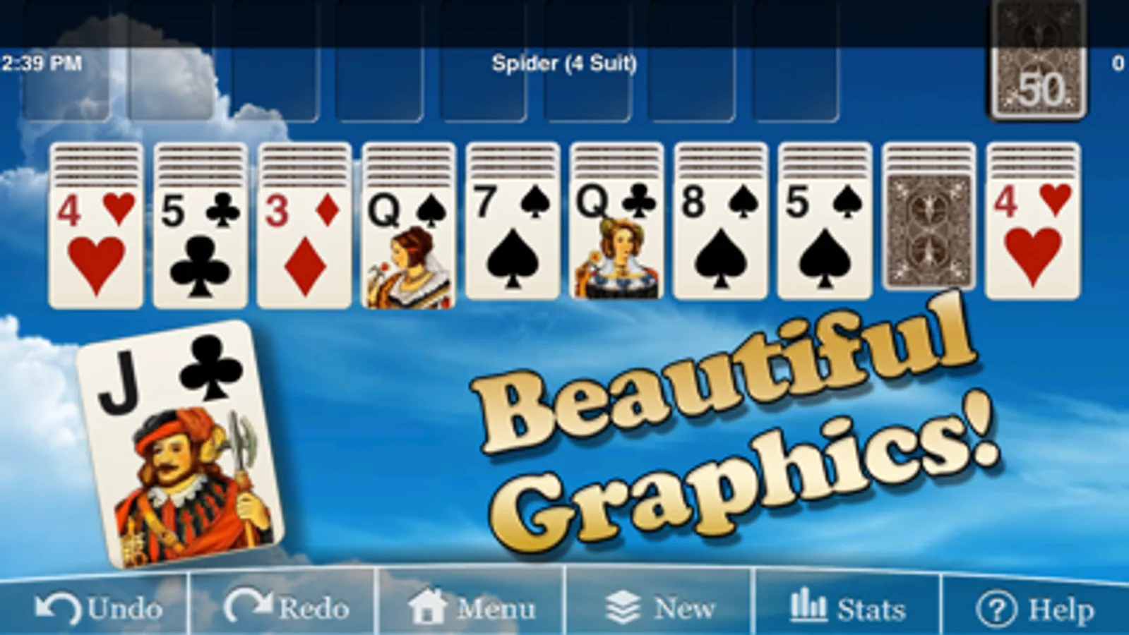 Eric's Spider Solitaire Lite includes four Spider Solitaire games with beautiful high resolution graphics and more! Play Spider Solitaire 1-suit, 2-suit, 4-suit and Spiderette on your iPhone or iPod. This top-rated free card game has a fantastic user interface, beautiful graphics and subtle sound effects.