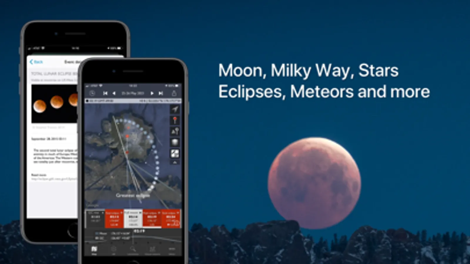 Night mode features a 3D representation of the Milky Way, pole stars and major constellations directly over the map, so you can easily visualize exactly how to align your shot.