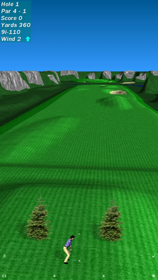 - Three dimensional hills, water, undulating fairways, sand traps, and tiered greens