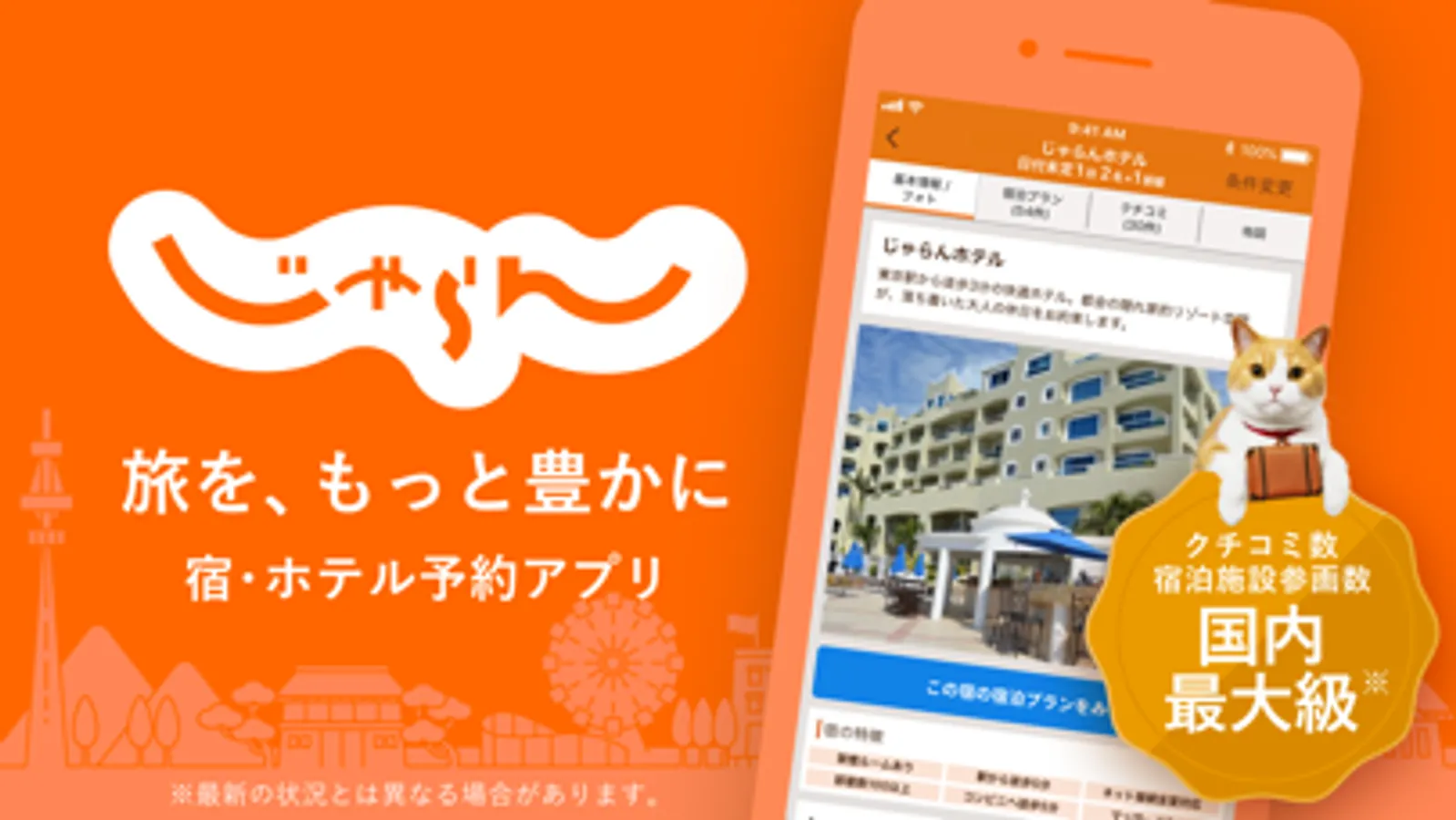 ・宿泊施設の検索時にアプリが落ちる方、大変お手数をおかけ致しますが最新版アプリへアップデートいただきますようお願い申し上げます。