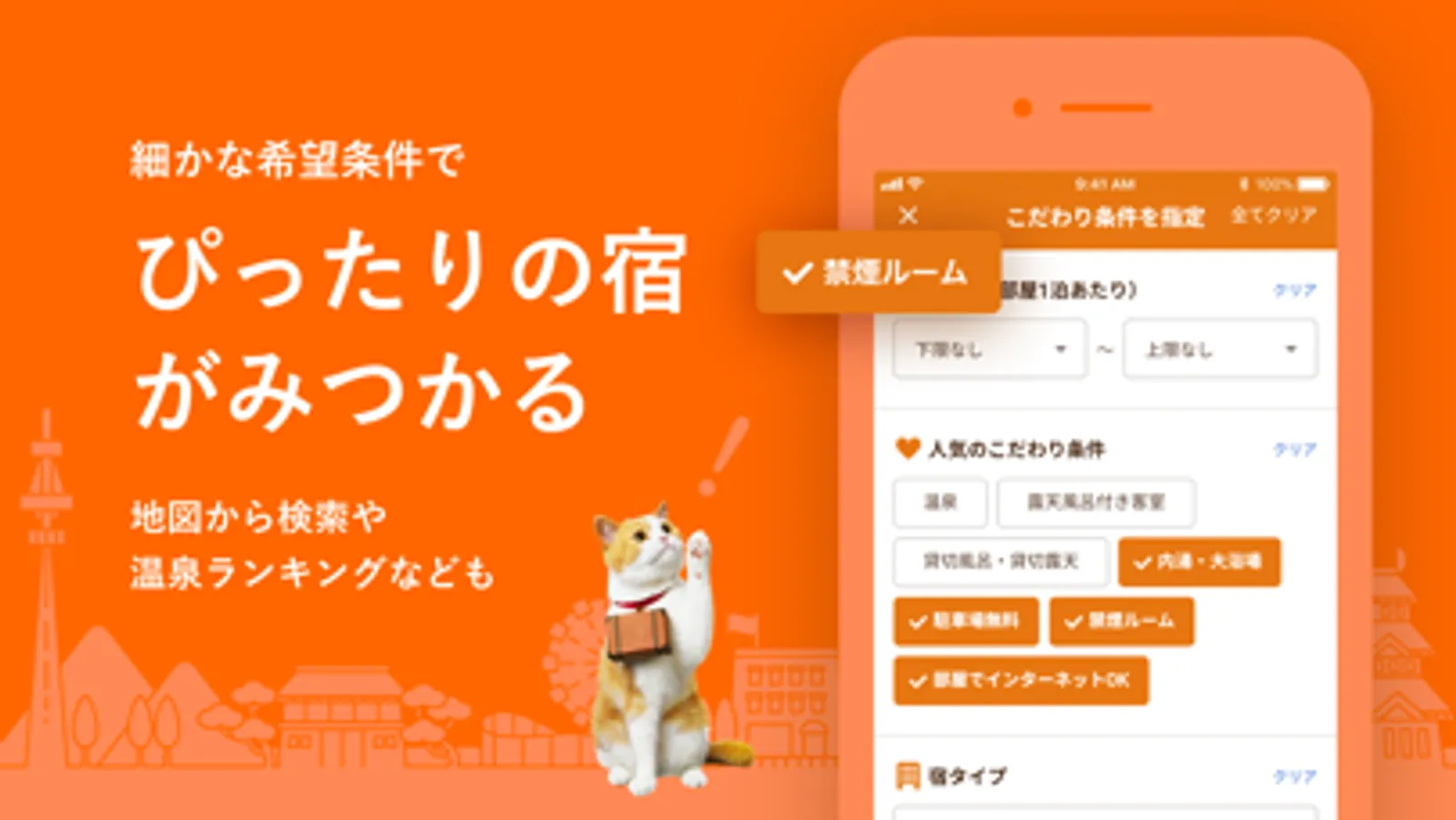 ・旅行先エリアや予算で宿検索やホテル検索ができる「条件検索」!