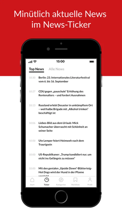 • Ticker: Hier finden Sie die aktuellen Top News und alle zuletzt veröffentlichten Nachrichten übersichtlich und auf einen Blick.
