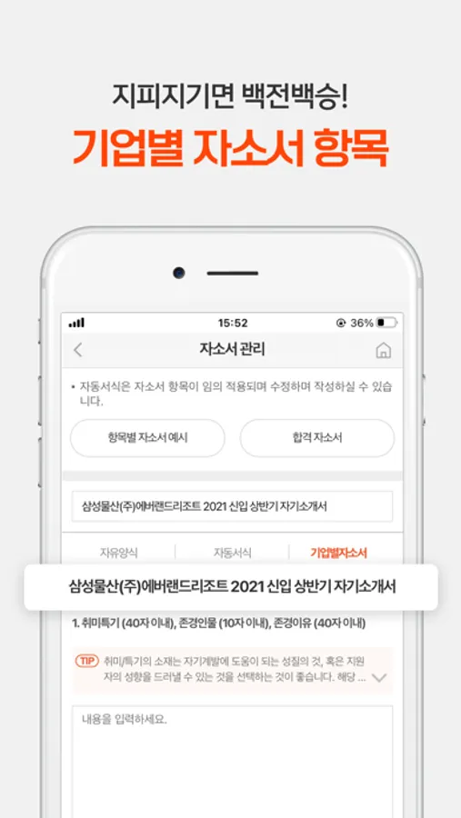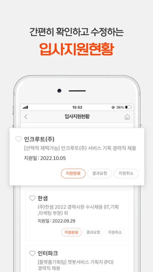 - 모바일로 이력서 작성부터 입사지원까지 앱만으로 한번에!