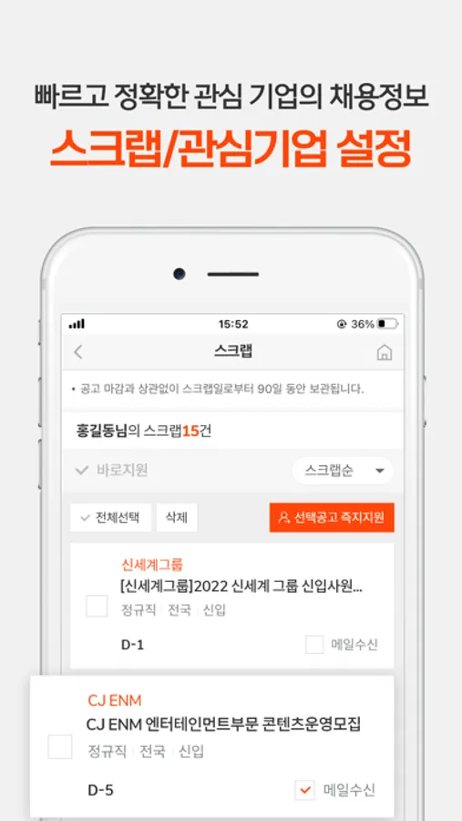 맞춤 채용 정보와 푸시 알람으로 빠르고 정확하게 실시간으로 취업 정보를 확인하세요