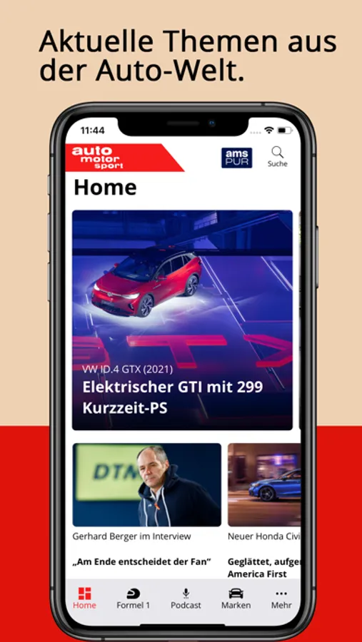 * Mit der kostenlosen AUTO MOTOR UND SPORT-App jederzeit mobil über die Geschehnisse in der Automobilbranche top informiert sein und Lieblingsthemen individuell zusammenstellen.