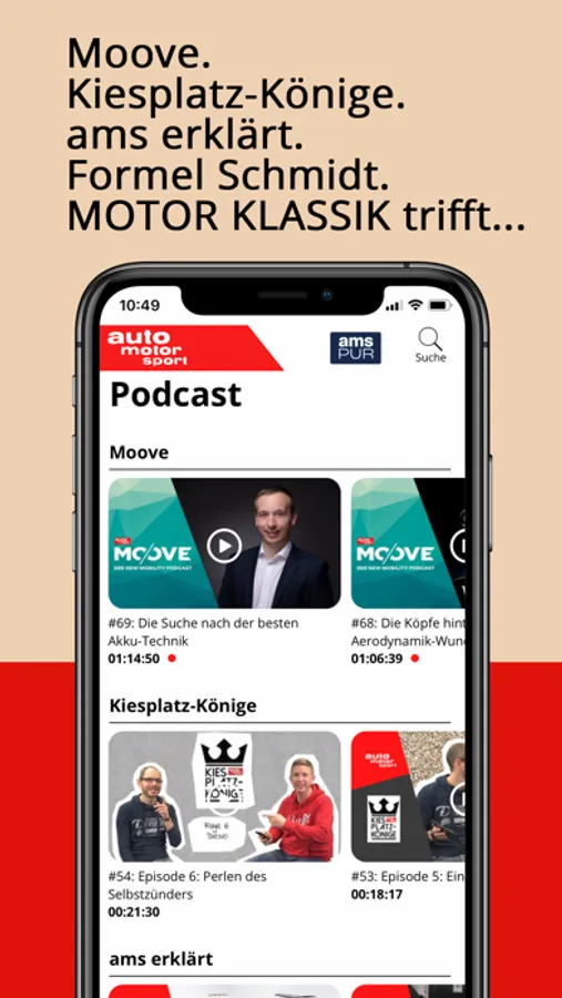 *Podcasts: Die beliebten Podcasts von AUTO MOTOR UND SPORT haben ihre ganz eigene Rubrik und können bequem in der App abgespielt werden.