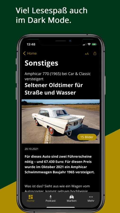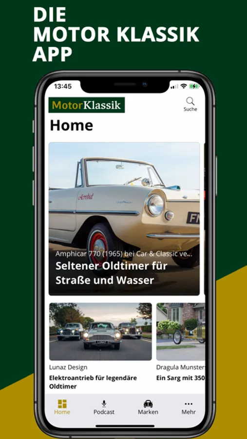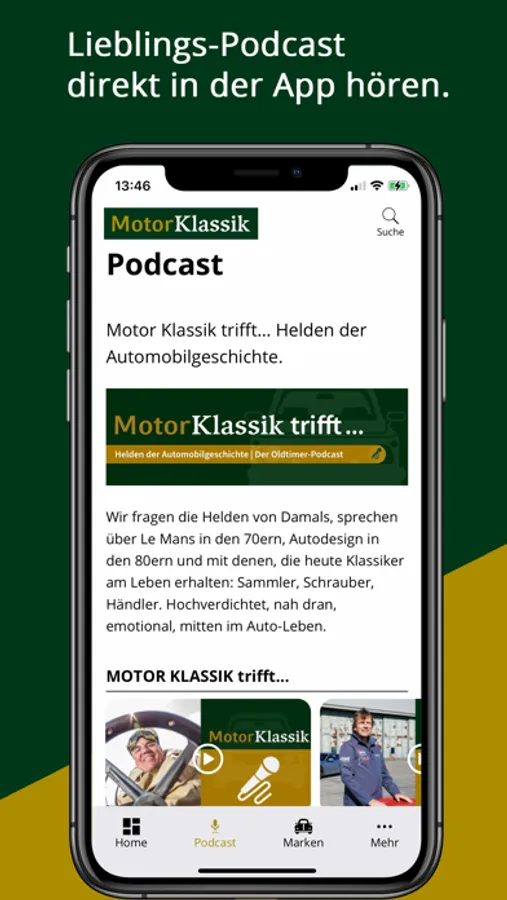 **Unser beliebter Podcast „Motor Klassik trifft… Helden der Automobilgeschichte“ ist künftig in einem eigenen Tab der Navigation erreichbar und kann direkt in der App angehört werden. Mit moderner Vollbildansicht ist die Bedienung kinderleicht. So macht Podcast hören richtig Spaß.