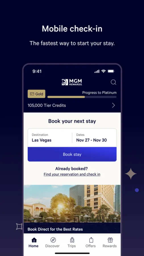 • Start Your Stay the Easy Way - MGM Rewards members can check in 24-hours before they arrive, and when it’s time to leave, they can simply skip the front desk and check out in a few clicks.
