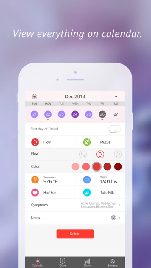 – Diary to keep track of symptoms, flow and more
