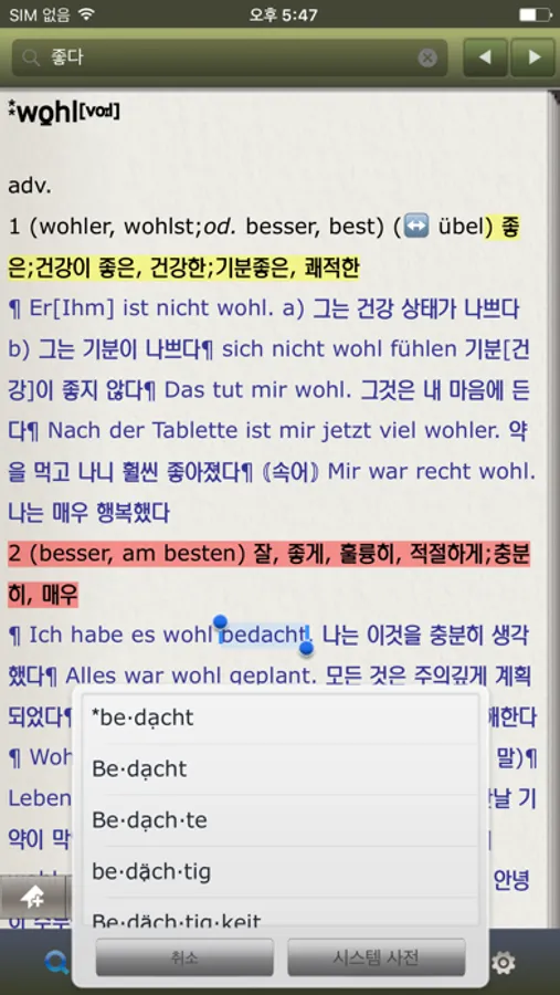 - [편리한 점프 기능] 본문에서 궁금한 단어는 터치하면 바로 해당 표제어로 이동