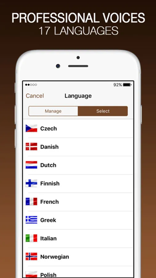■ 17 premium voices from the best voice engine Acapela are available through in-app purchase and integrated iOS voices.