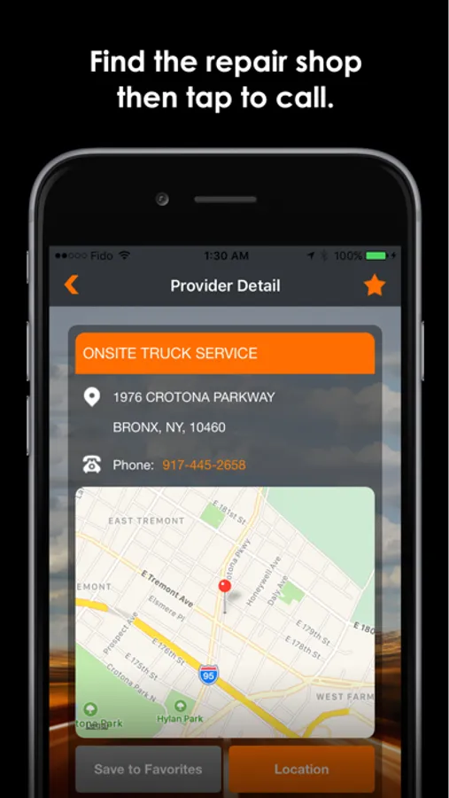 You can save your favorite vendors to your favorites list, send us feedback about service providers, or dial phone number with one tap, and you never have to login to use these features like some trucker apps require.