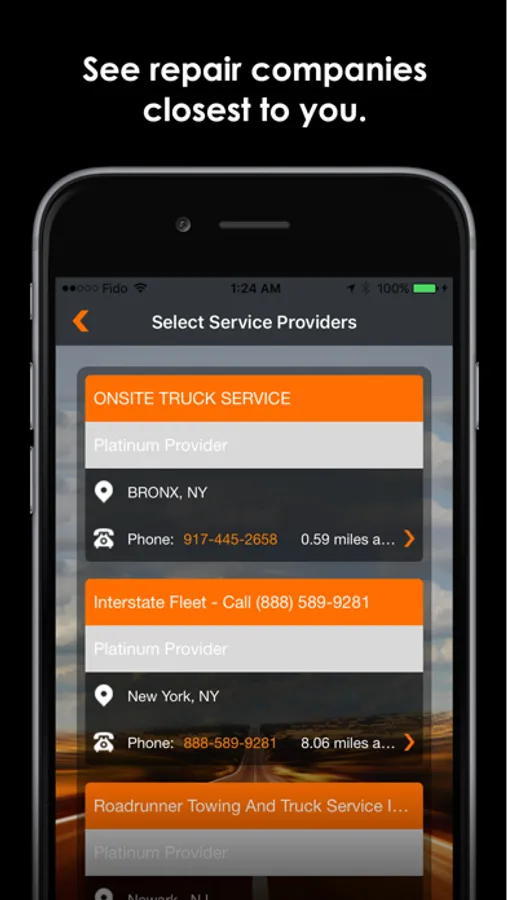 4RoadService for iPhone is used daily by truck drivers and dispatchers throughout the USA and Canada to locate the closest truck stops, truck repair and road service providers where they are most needed: on the road.