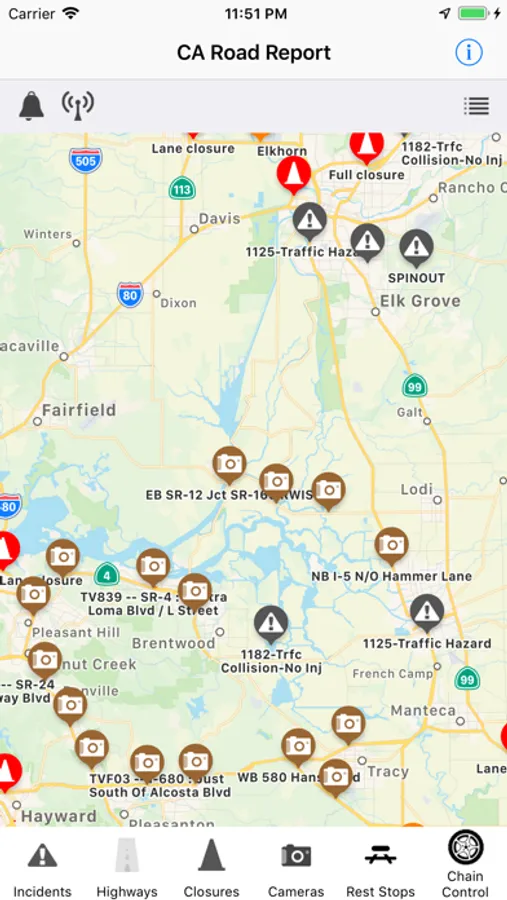 With California Road Report you can view CHP incidents, CalTrans road conditions, chain control, road closures, CalFire incidents, and find rest stops in California on your iPhone, iPad, and Apple Watch on the go!