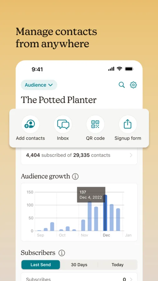 Marketing CRM - Keep up with your contacts with Marketing CRM from Mailchimp. Find and add new customers with contact import tools, such as the business card scanner. Track audience growth and view insights about individual contacts on the dashboard. Do it all in one place - call, text, and email directly from the app. Record notes and add tags after every interaction to remember the important details.