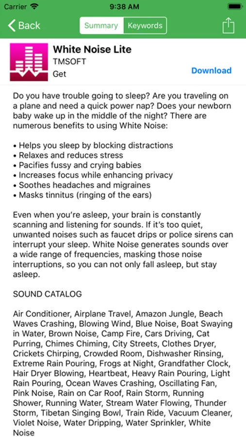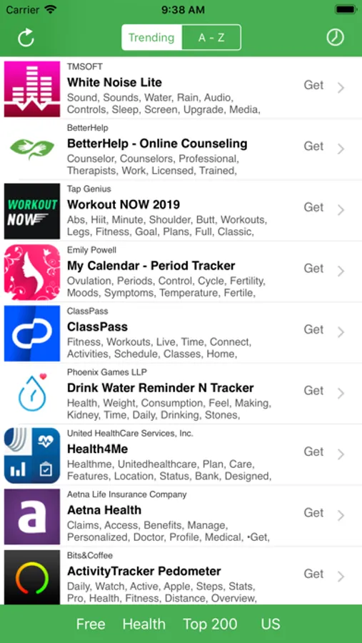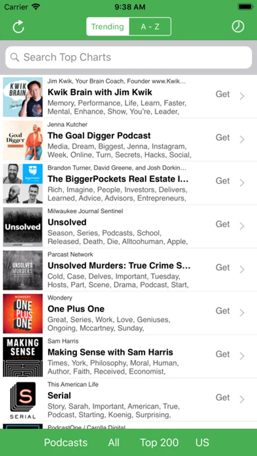 Top Charts shows up to 200 apps, podcasts, songs, and movies filtering by different categories and countries! Utilizes our custom ranking system based on search engine technology. Shows the top keywords for each application so you spend less time reading and more time downloading. Universal app supports all iOS devices and orientations. Power users and developers will appreciate how quickly they can drill down into the data!
