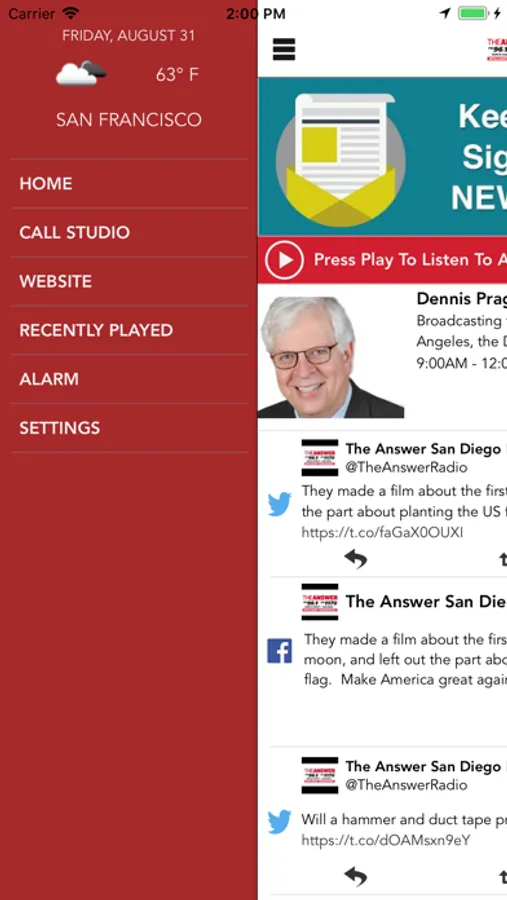The new The Answer San Diego app is your station for intelligent, conservative talk radio. With the new AM 1170 The Answer radio app you can feed your appetite for the best that AM 1170 The Answer has to offer.