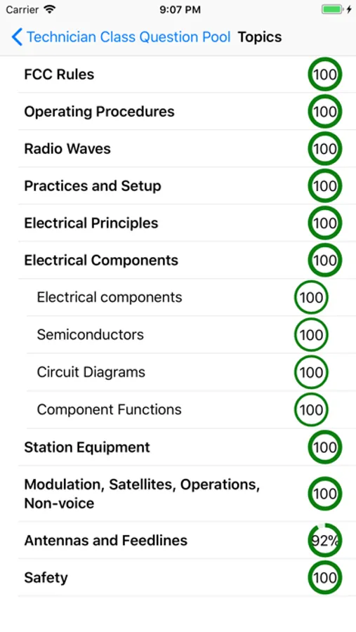 See your proficiency for each of the topics you study. Ham Tech tracks your proficiency for you so you always know how you are doing.