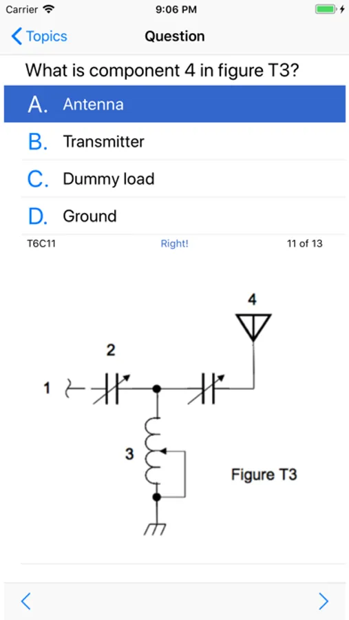 When you select a wrong answer, Ham Tech shows you the correct answer. This immediately draws your attention to the correct answer. Turn off Auto Correct on the Settings page if you do not want it.