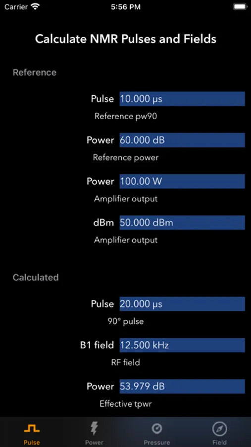 There is a new emphasis on NMR utility, with options for calculating pulses based on reference power and pulse length. Powers are in Watts, dBm, and dB values.