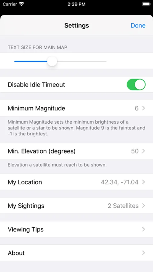 * Choose the minimum magnitude (brightness) for a satellites to be shown
