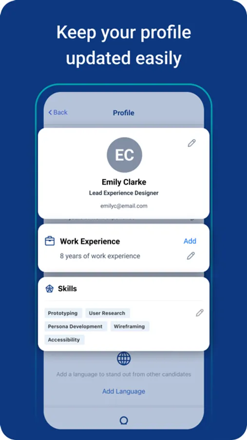 Stand out for recruiters and hiring managers by creating your professional profile and keeping it updated. Create your profile, upload your resume and easily manage them on the go. A full profile will position you better for a job application. Keep your profile fresh to always be ready for a career advancement.