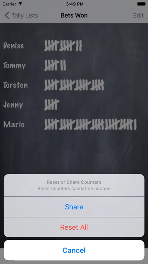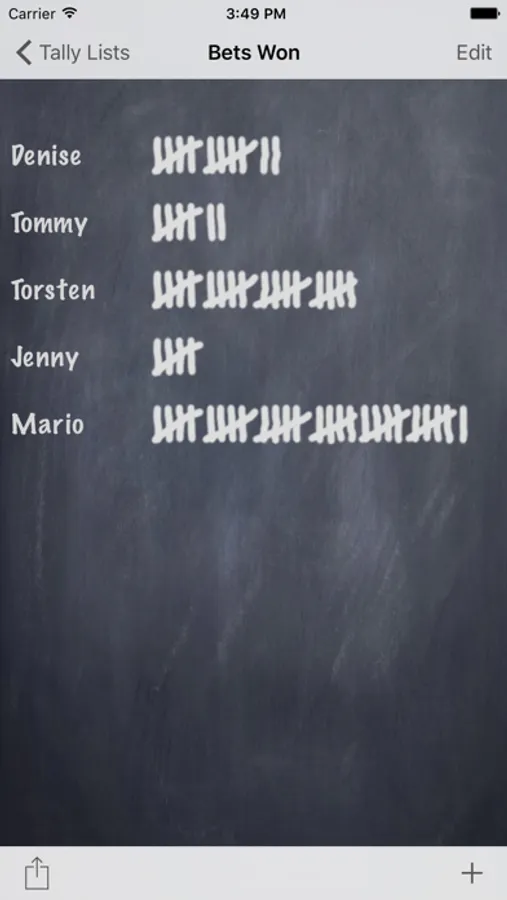 Tally List provides easy counting in a beautiful chalkboard style. Who drinks how many beers? You can bet on anything with your buddies and this apps keeps track of your results.