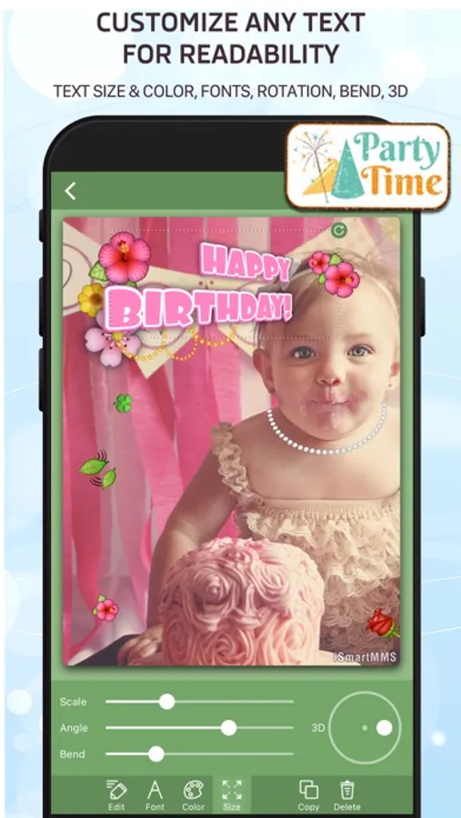 "BirthDay cards free" is absolutely for free, but with ads. If you like the app then you might be interested in its full version - "iSmartMMS". "iSmartMMS" has a huge Gallery of photos and images for any occasions. And unlike the birthday version "iSmartMMS" allows you to use your own photos and pics if you’re not satisfied with the standard gallery.
