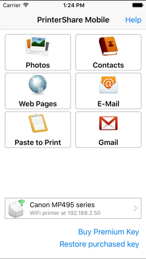To unlock the full functionality, you need to buy the Premium Key available as an in-app purchase inside this app or by purchasing the PrinterShare Premium app from the App Store.