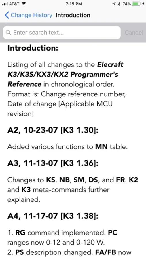 Kxx Programmer's Guide is a handy reference to the Elecraft K3, K3S, KX3 & KX2 radios programming language in an easy to use iPhone/iPad format. It combines programmer reference information from the K3, K3S, KX3 and KX2 Owner's Manuals and Firmware Revisions to make it easy to find the information you need to program your radio.