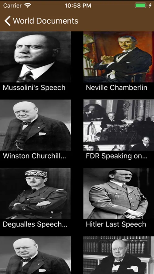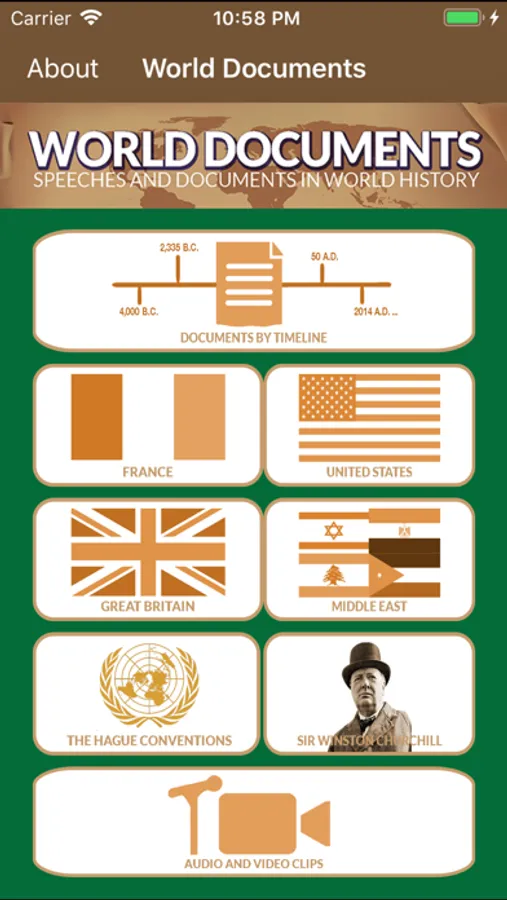 WORLD HISTORY DOCUMENTS includes 350 primary source documents and speeches written throughout the course of World History. From the Bible to Obama’s Nobel Acceptance Speech, this application covers the breadth and depth of world history. WORLD HISTORY DOCUMENTS also includes 19 audio and video recordings of famous speeches and addresses.
