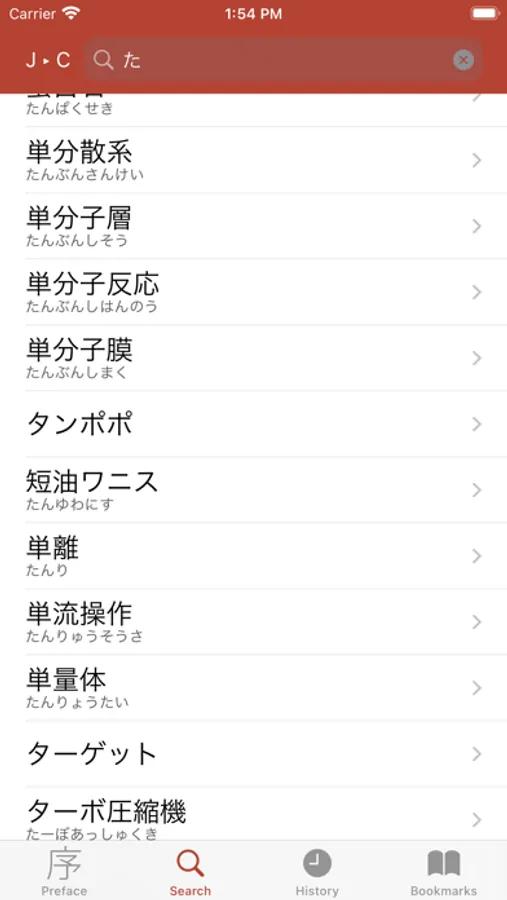 The Chemical Terms Dictionary, compiled by The CJK Dictionary Institute (CJKI) in Japan, is the only application on any mobile platform that provides comprehensive coverage of chemical terminology. This application, which provides a user interface in both Japanese and Chinese, as well as English, includes both Chinese-Japanese and Japanese-Chinese dictionaries that provide access to a total of approximately 19,000 technical terms.