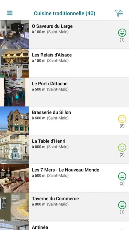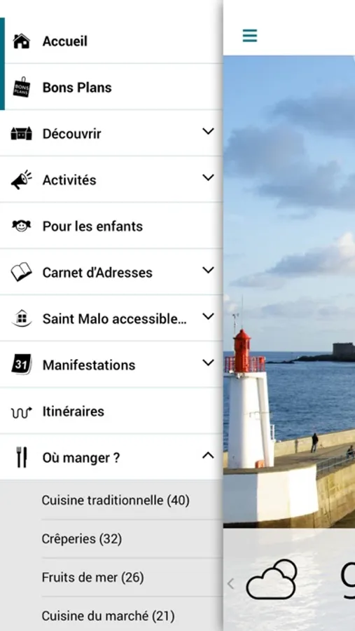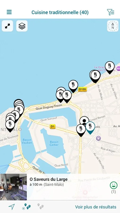 Avec SAINT-MALO TOUR, suivez le guide ! Retrouvez toutes les adresses des restaurants, sorties ou hébergements recensées par l'Office de Tourisme. En un clic, appelez l’établissement sélectionné, envoyez un mail ou un texto avant de demander à Plans de vous y emmener.