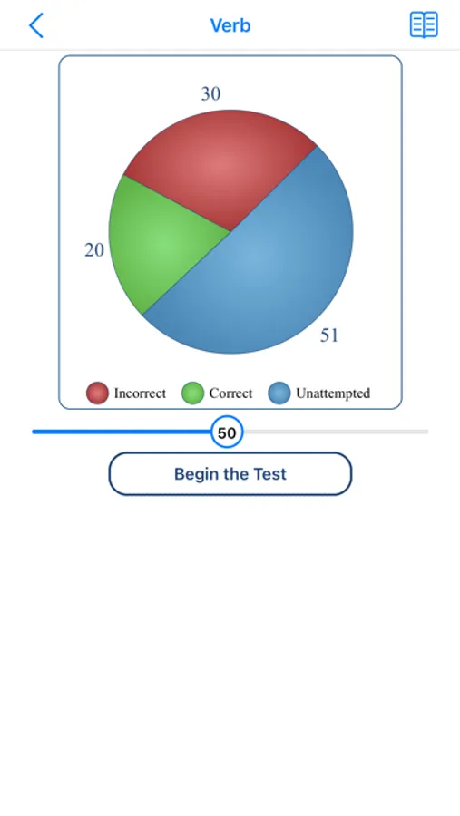 The app records your progress as you start giving practice tests.