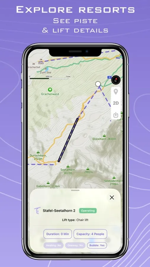 - Route Planning & Discovery: Plan your ski day using accurate trail and lift data, or mark new off-piste routes for future adventures.