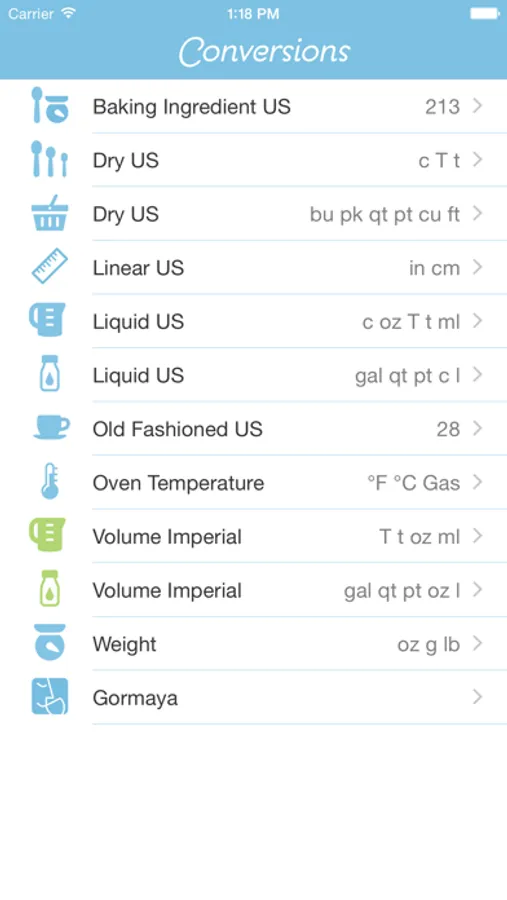 Equivalents tables. Bake & Cook. iOS 11. iOS 12.