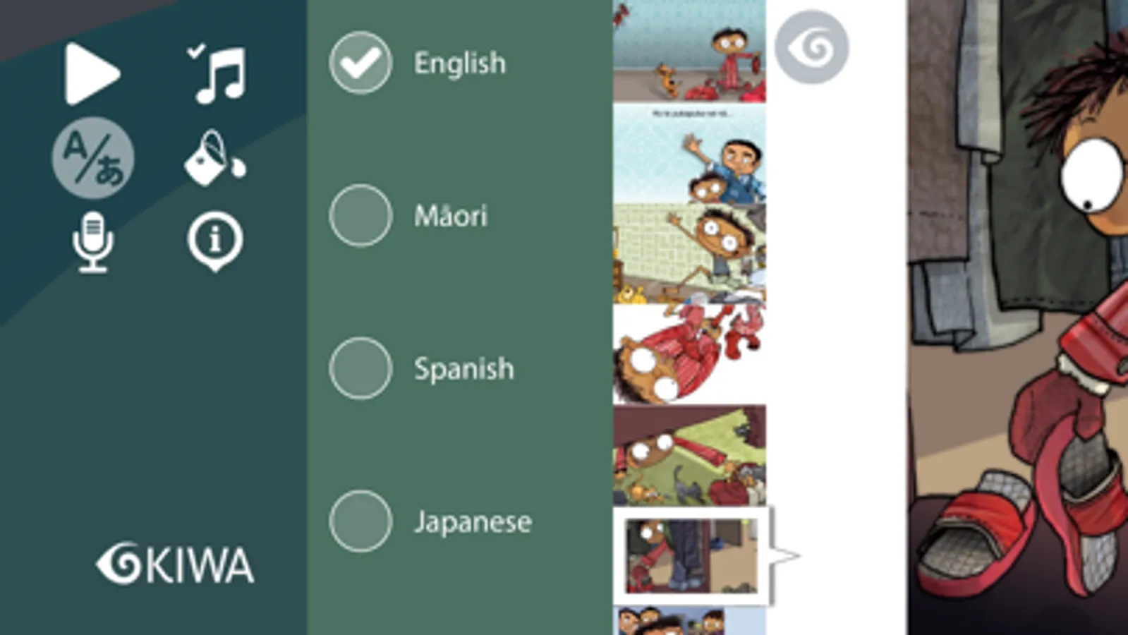 This digital book contains text and audio in the following languages: English, Spanish, Japanese and Maori