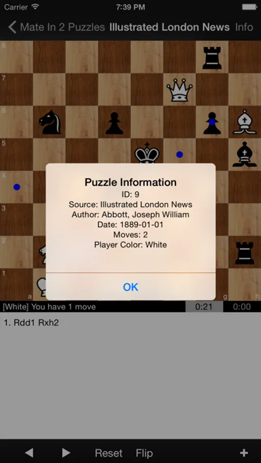 This app has over 1200 interactive chess problems ranging from easy to harder puzzles that will challenge you and help improve your chess skills. The object is to finish each game by forcing a checkmate in 2 moves. The puzzles consist of a large number of classical puzzles collected from a variety of sources. These puzzles are fun to play and can be enjoyed at your leisure on your iPhone, iPod touch, and iPad.