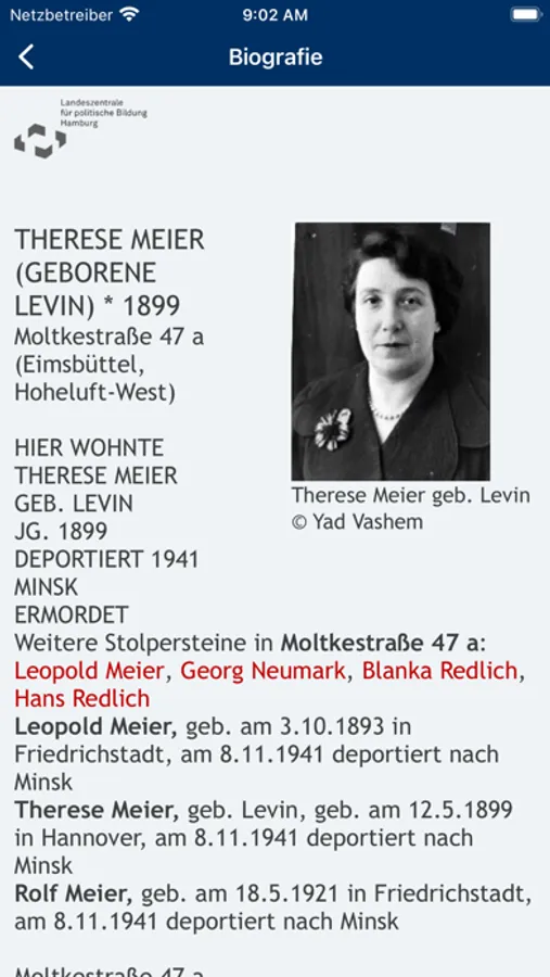 - Biografie des NS-Opfers (falls vorhanden).