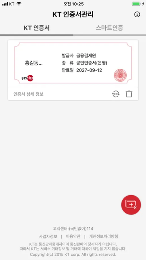 "KT 인증서 관리는 현재 기본적으로 무료로 제공되는 서비스입니다.