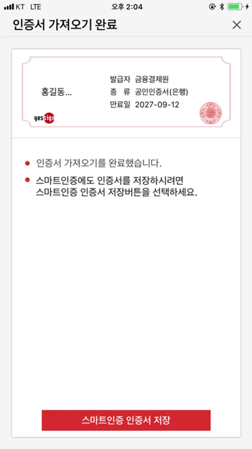 - PC에서 저장한 KT 인증서 관리는 스마트인증으로 저장 할 수 있습니다.