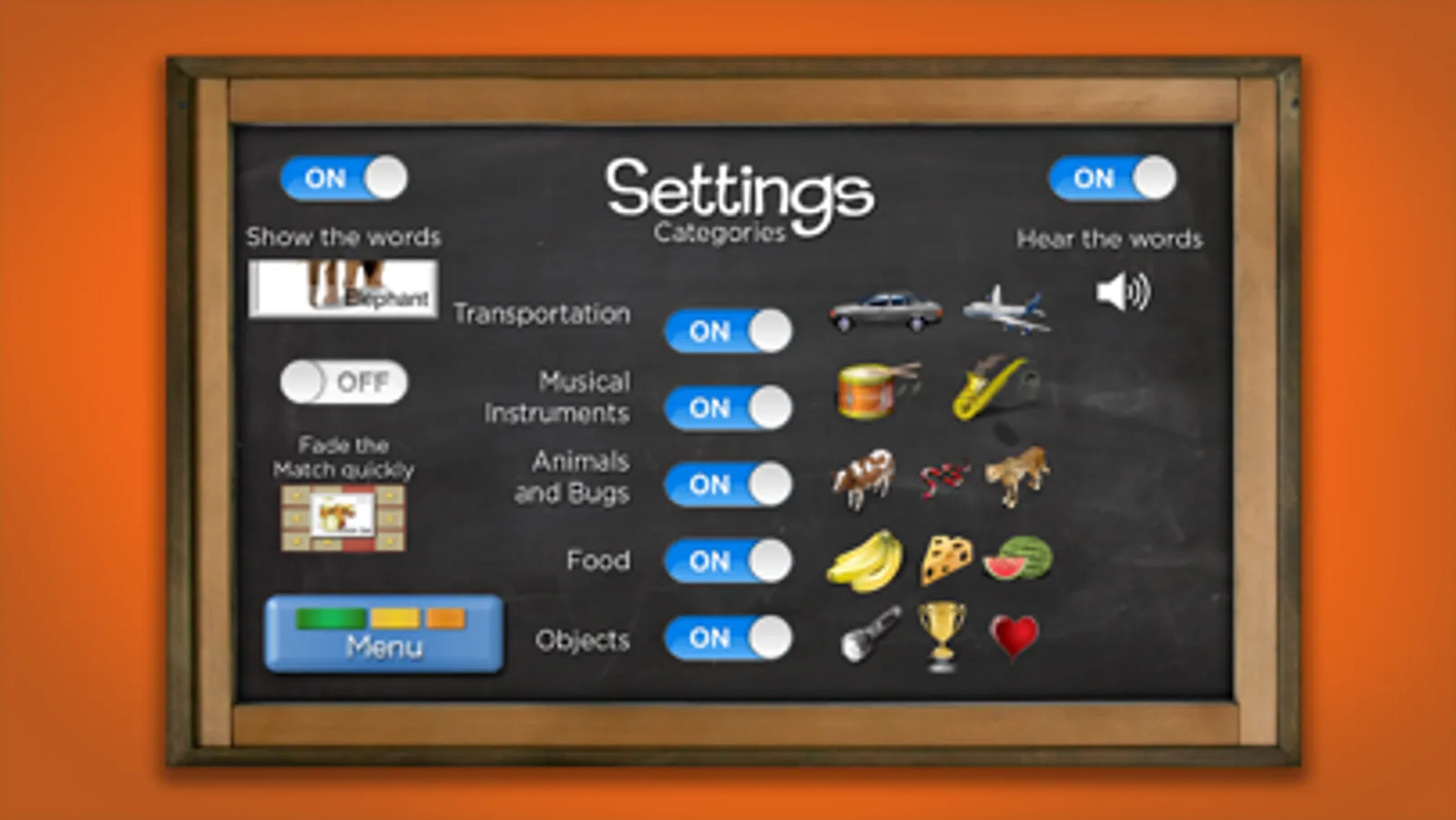 Note: If English is not your preferred language, turn OFF "Show the words" and "Hear the words" and enjoy fun gameplay with all the sound effects!