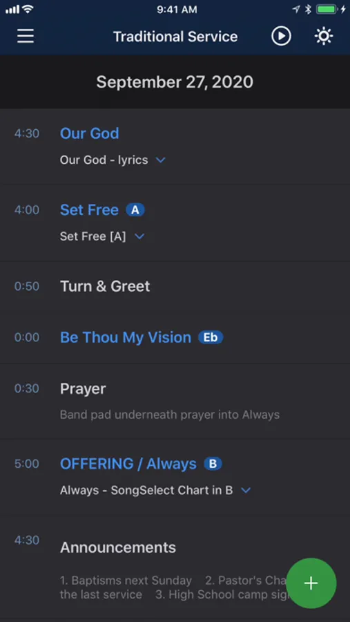 12.) Editors can reorder items in the plan, add new songs to the plan, edit existing items, or delete them.