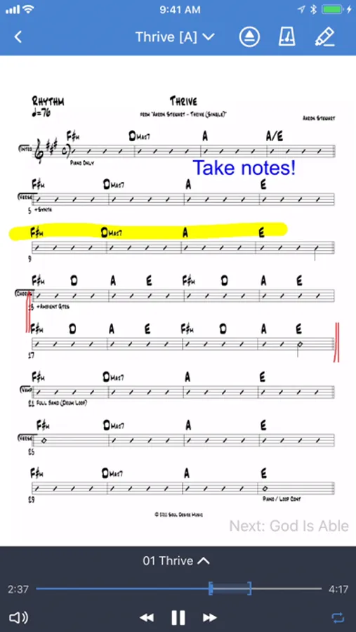 4.) Listen to audio attached to each song and loop sections of the audio.